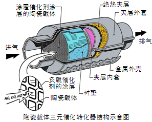 圖1 陶瓷載體三元催化轉化器結構示意圖