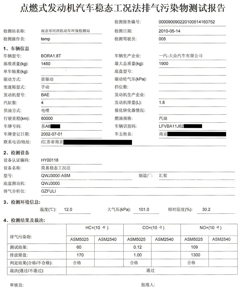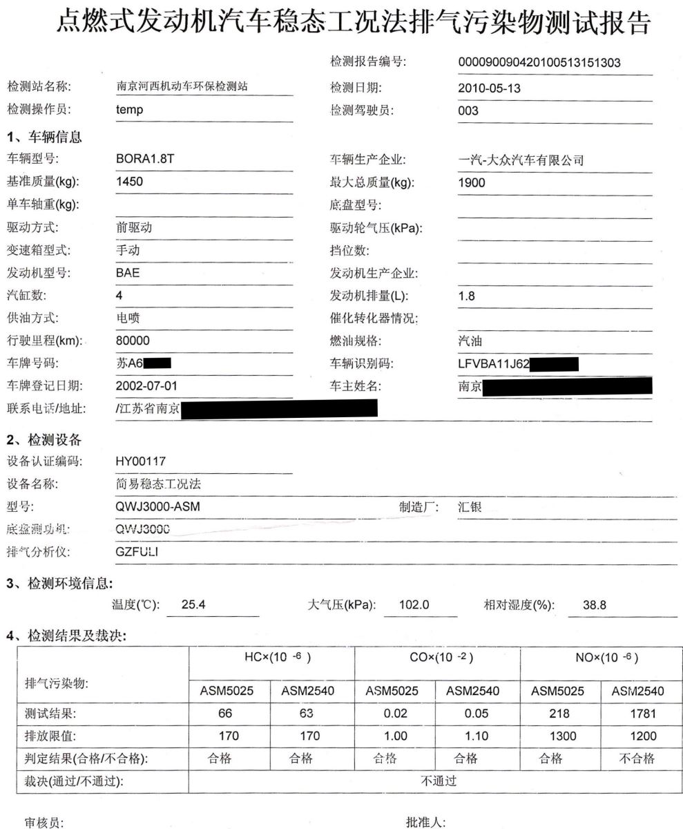 1. 未使用眾潔三元催化再生清洗劑的尾氣檢測報告